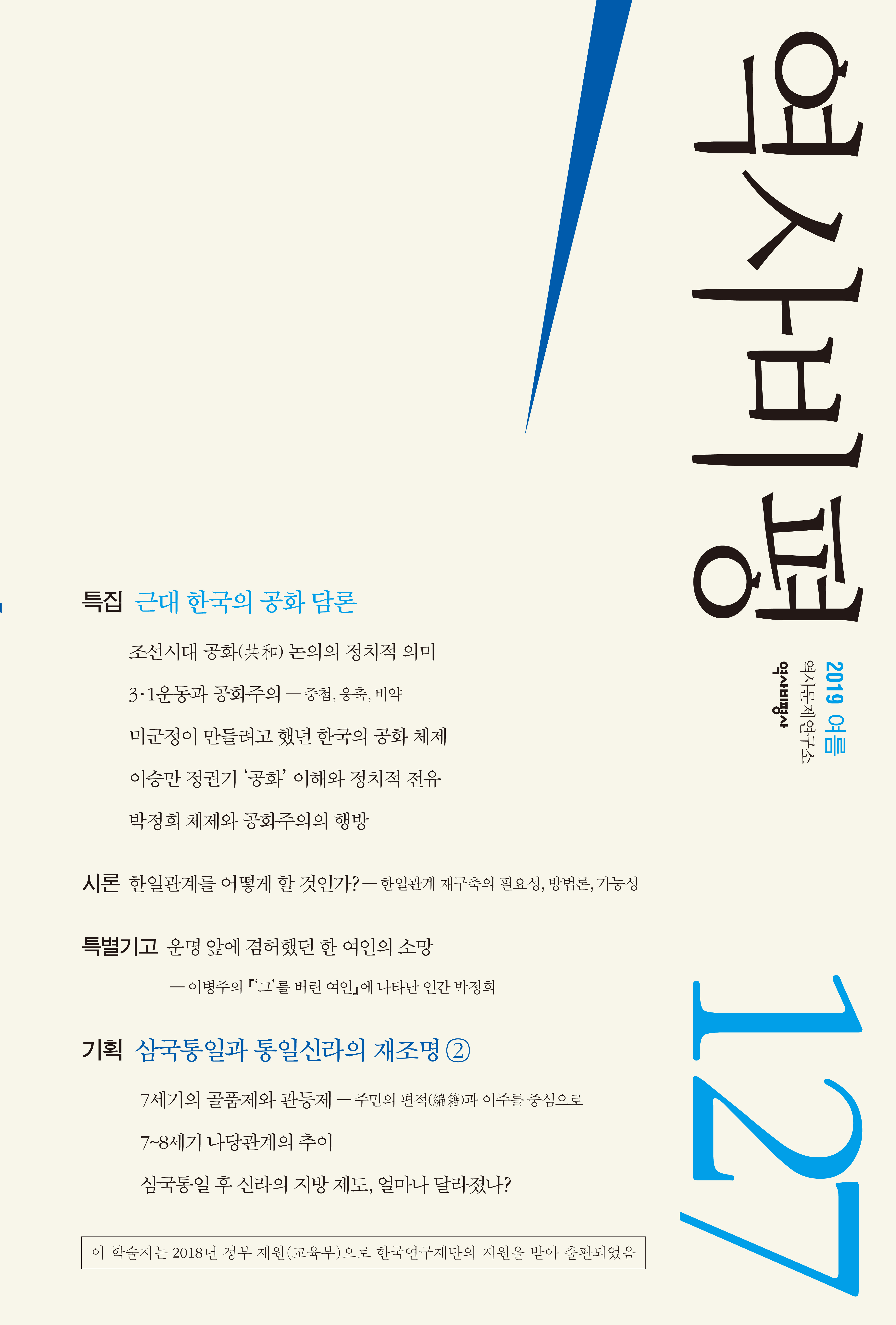 여름호 특집의 주제는 ‘근대 한국의 공화 담론’이다. 2천 년이 넘도록 왕정이 지속된 한국 사회에 ‘공화’라는 담론이 자연스럽게 들어오게 된 이유는 무엇인지, 그리고 그렇게 사회 속에 뿌리내린 공화 담론이 이후 어떻게 진화해 나가는지 등이 가장 중요한 문제의식이다.