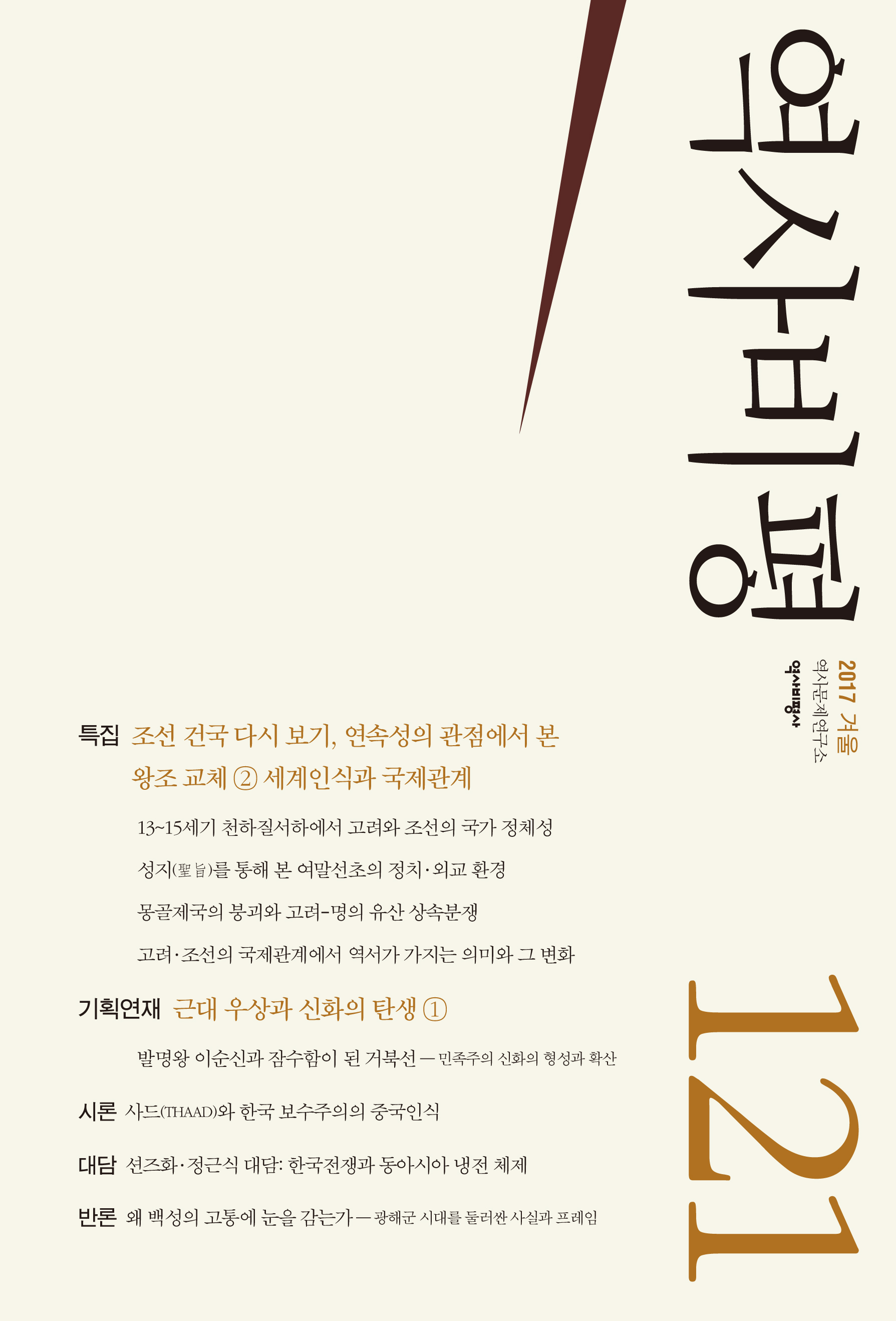 2017년 겨울호의 ‘특집’은 지난 호에 이어서 여말선초 시기의 변화와 연속성을 주제로 하고 있다. 이번 호에서는 당시 동아시아 국제정세의 흐름 속에서 몽골(원), 명과의 외교관계를 지속하는 가운데, 고려와 조선이 어떻게 왕조의 위상을 설정하고 통치의 기반을 수립했는지 살펴보면서 조선 건국을 전후한 시기의 연속성과 단절성을 분석한다.