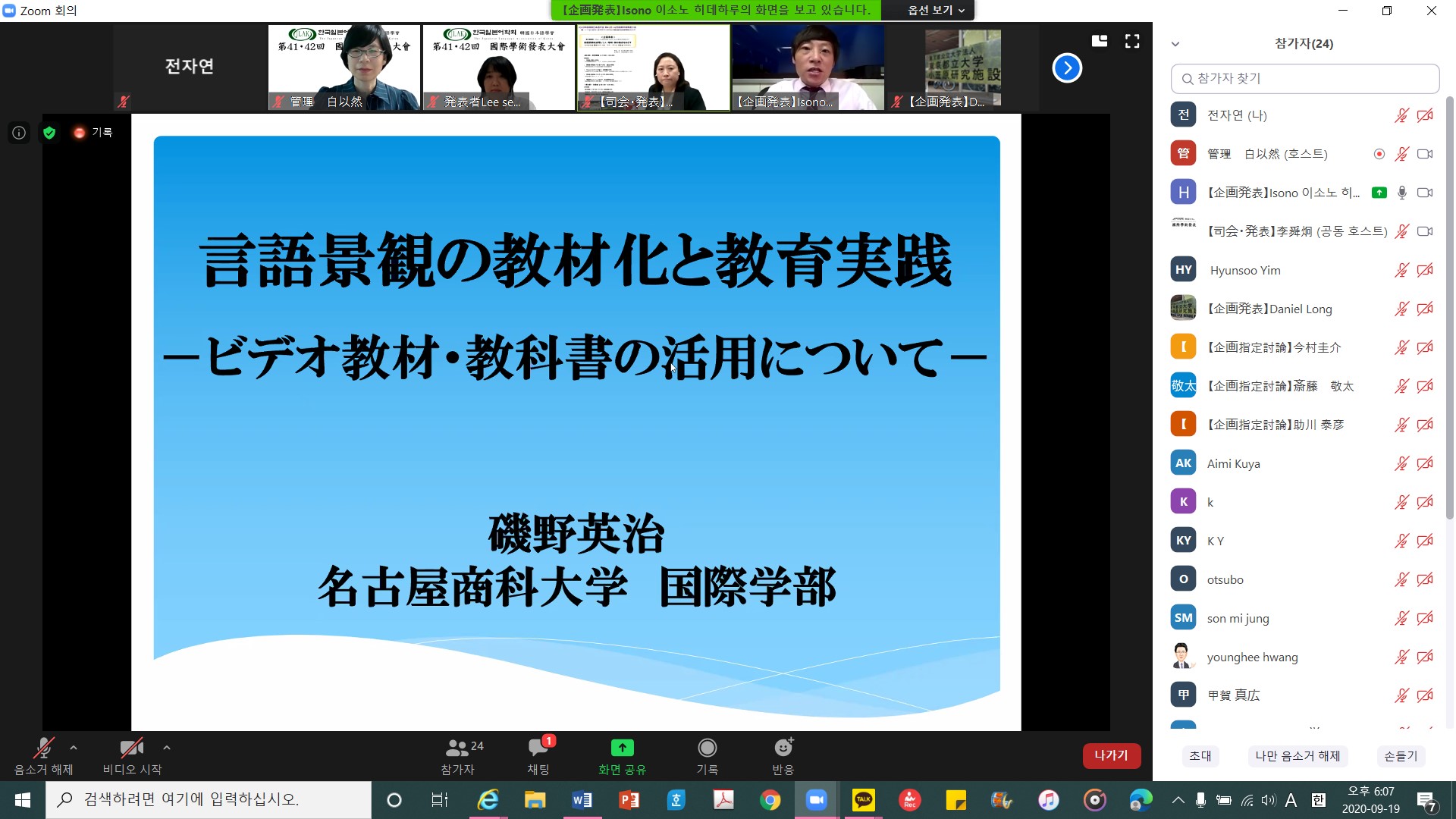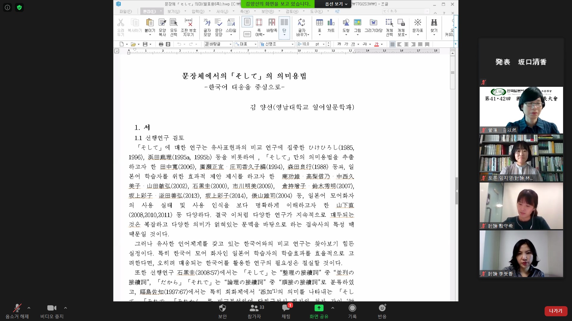 2020년도 제 41회, 42회 학술대회- 제 1발표장