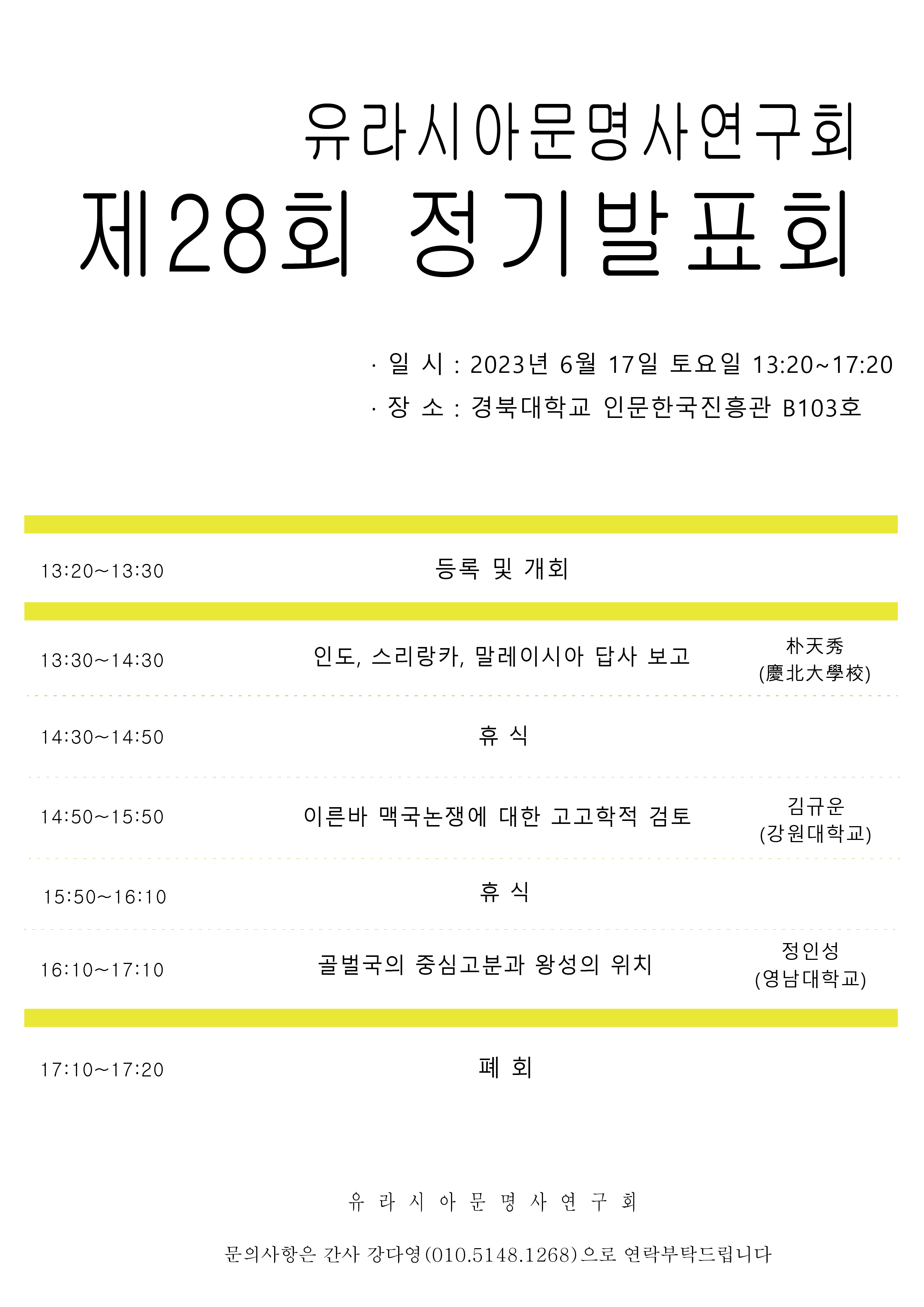 2023년 6월 17일 토요일, 유라시아문명사연구회 제28회 정기발표회가 진행될 예정입니다.