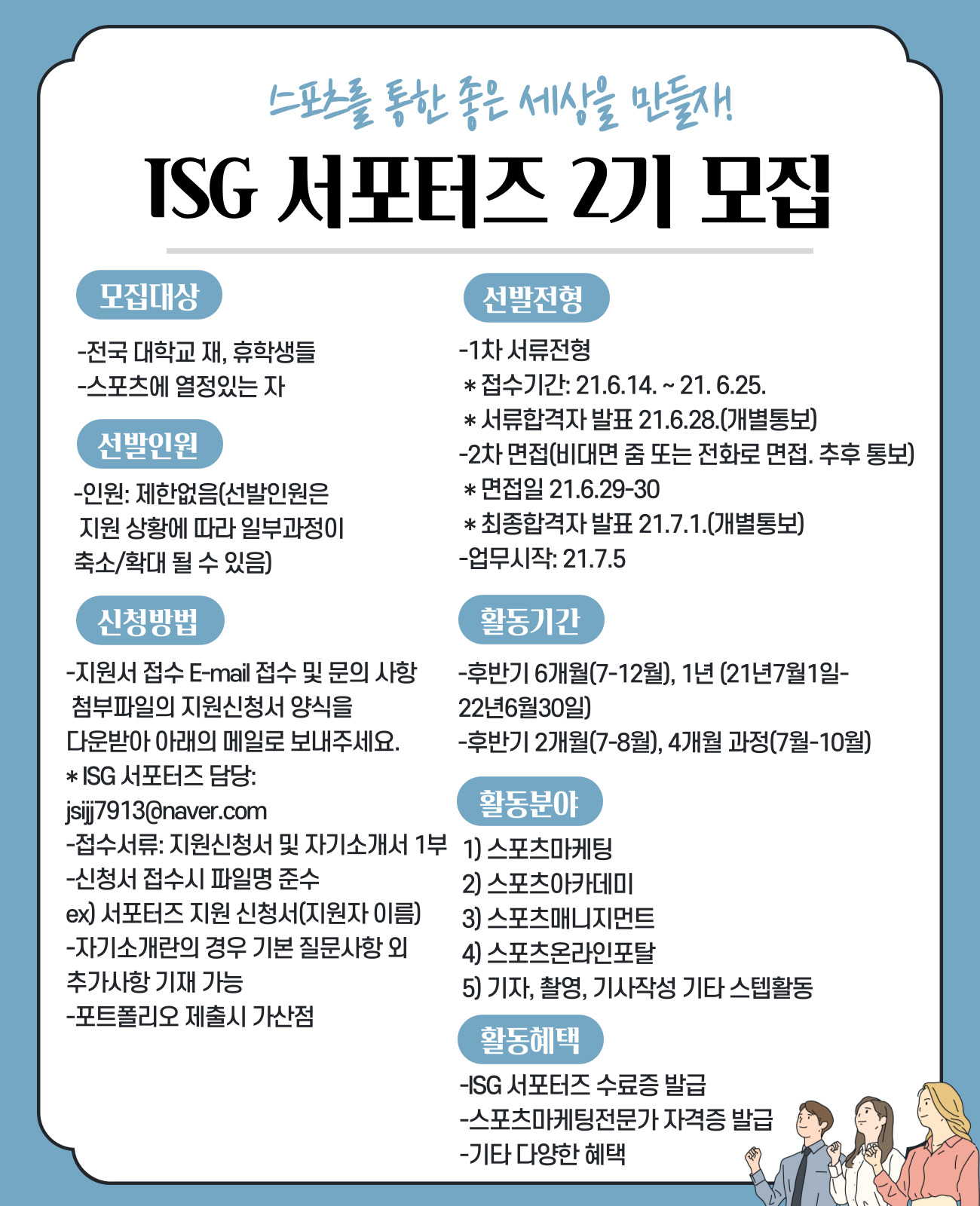ISG 서포터즈 2기 모집 안내 세부사항 및 홍보 포스터
