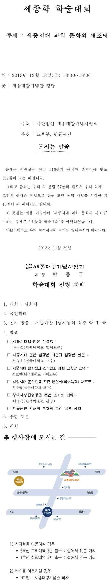 세종학 학술대회를 하오니 많은 참석바랍니다.