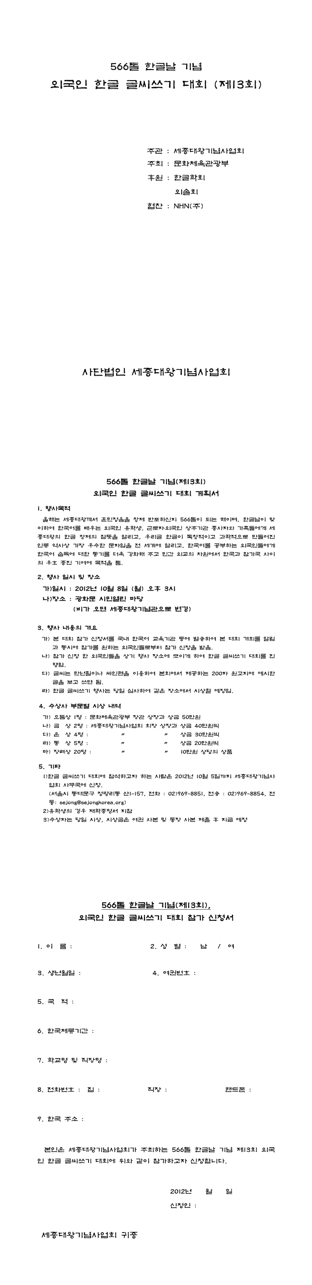 제20회 한글 글꼴디자인 공모전 계획서 및 참가신청서입니다.