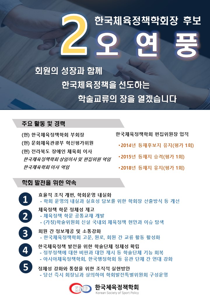 제11대 한국체육정책학회 회장선거 후보자 홍보 - 2번 오연풍