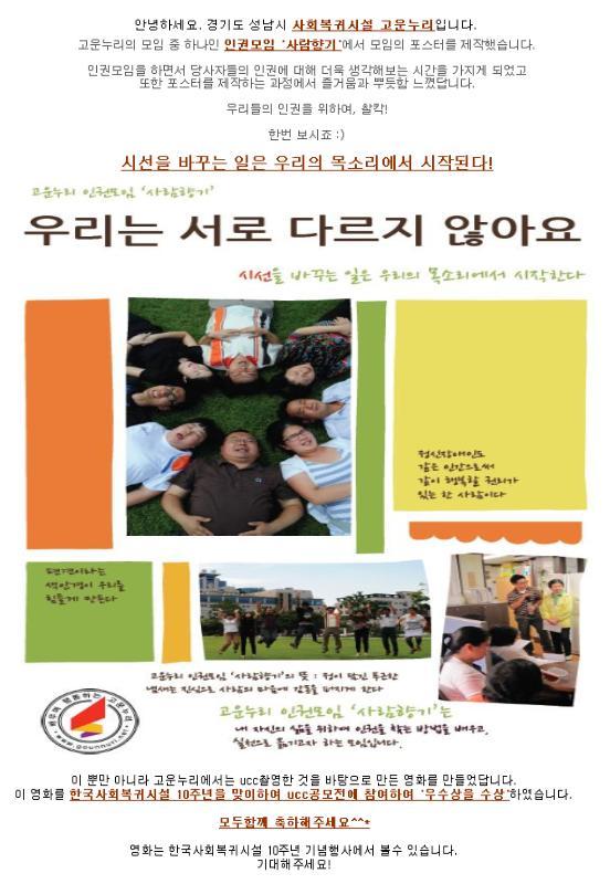 고운누리 인권모임 포스터제작 & ucc 우수상 수상