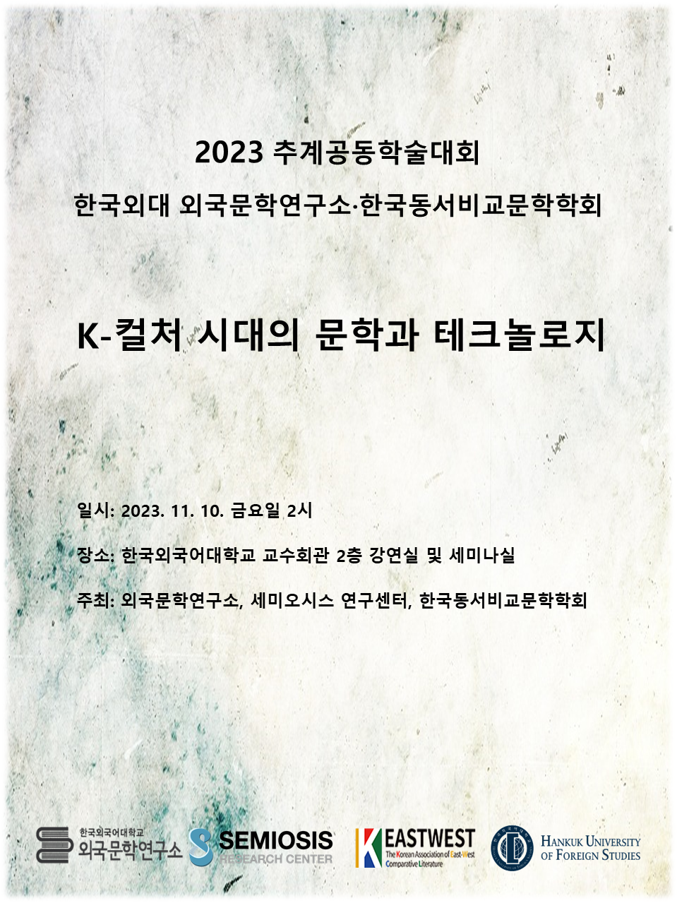 주최: 한국외국어대학교 외국문학연구소, 세미오시스 연구센터, 한국동서비교문학학회