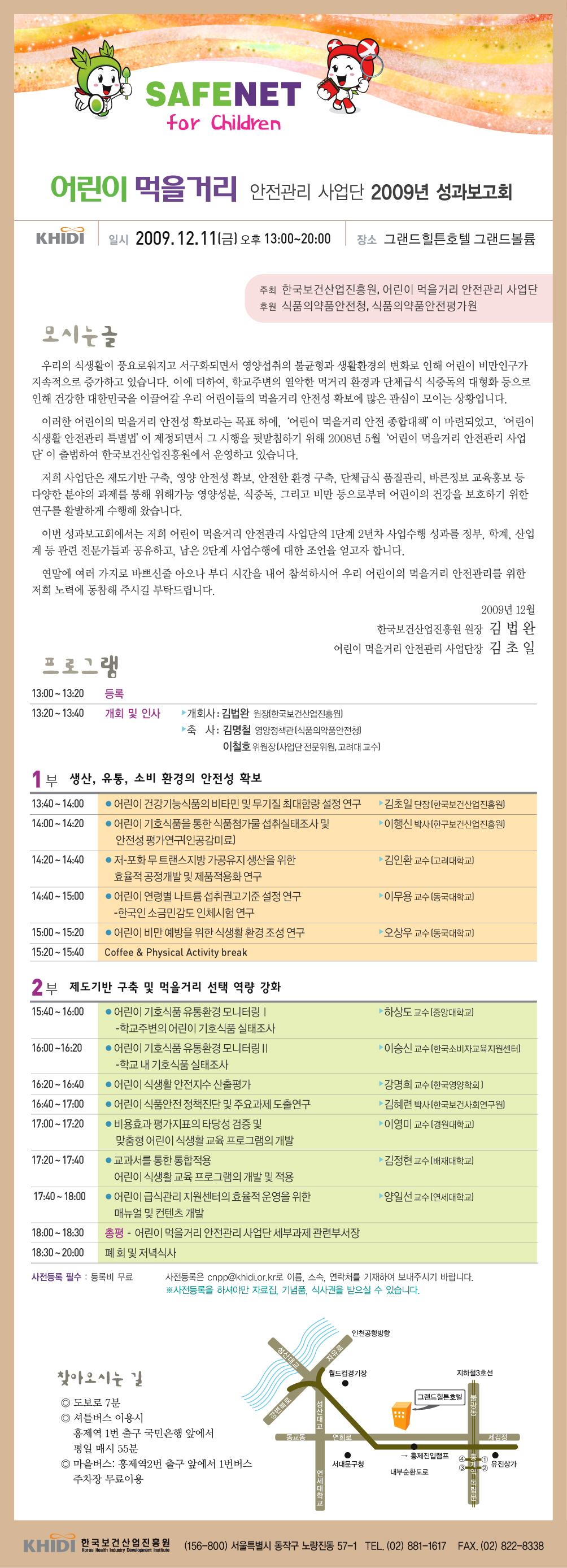 1. 제목 : 어린이 먹을거리 안전관리 사업단 성과보고회