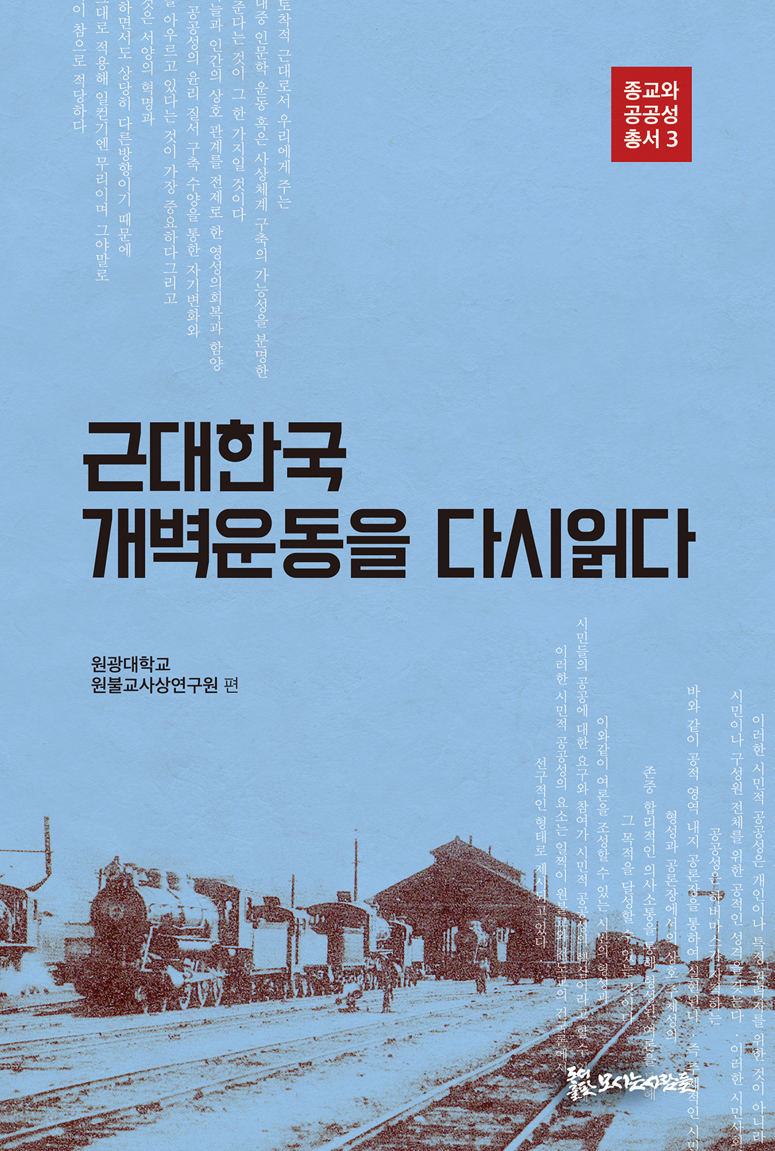 원광대학교 원불교사상연구원이 ‘한국연구재단 대학중점연구소’로서 진행하고 있는 “근대 한국종교의 공공성과 새로운 문명” 프로젝트의 성과를 중심으로 ‘종교와 공공성’을 주제로 발행하고 있는 학술총서이다.