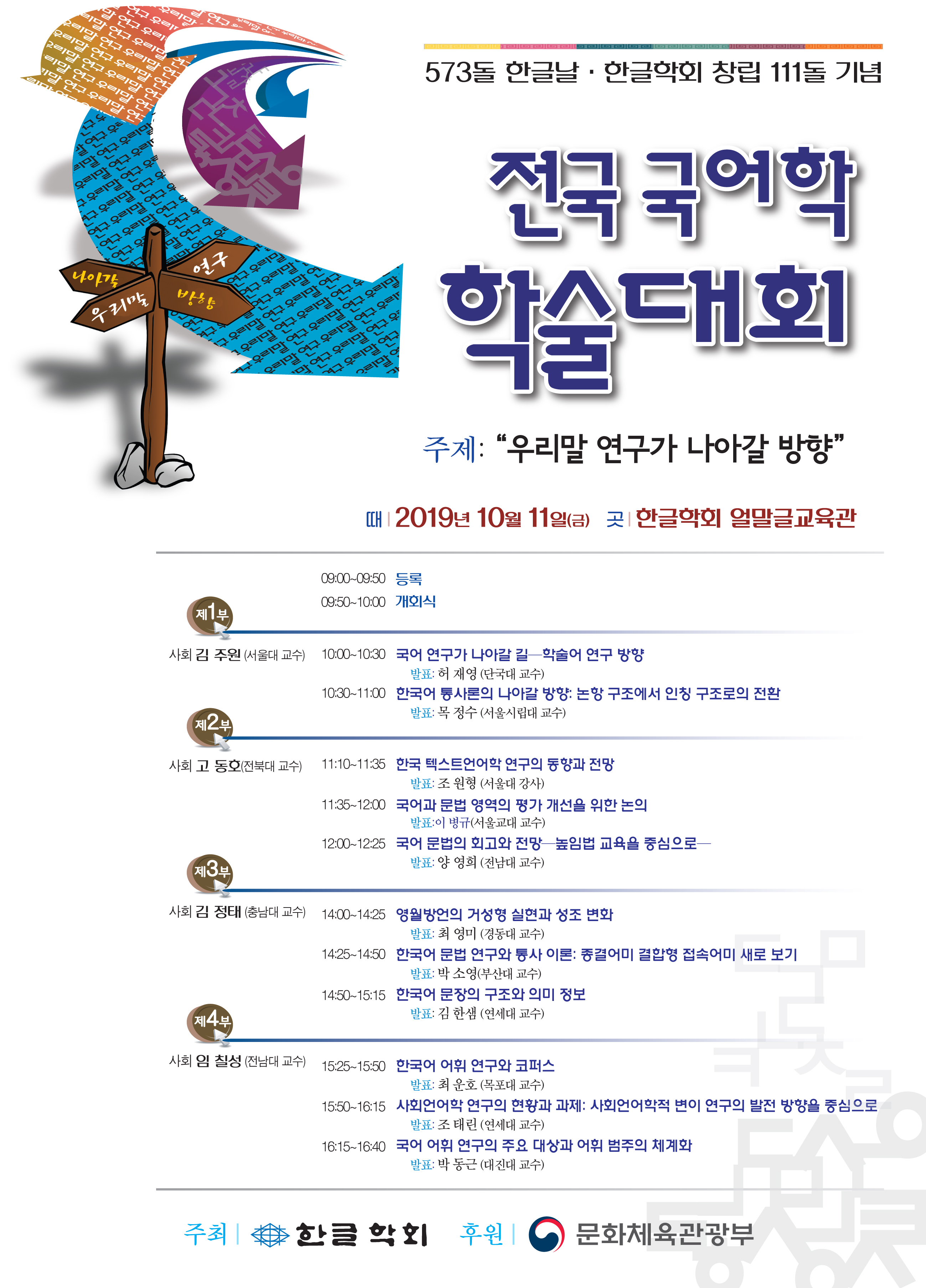 573돌 한글날 및 한글학회 창립 111돌 기념 전국 국어학 학술대회