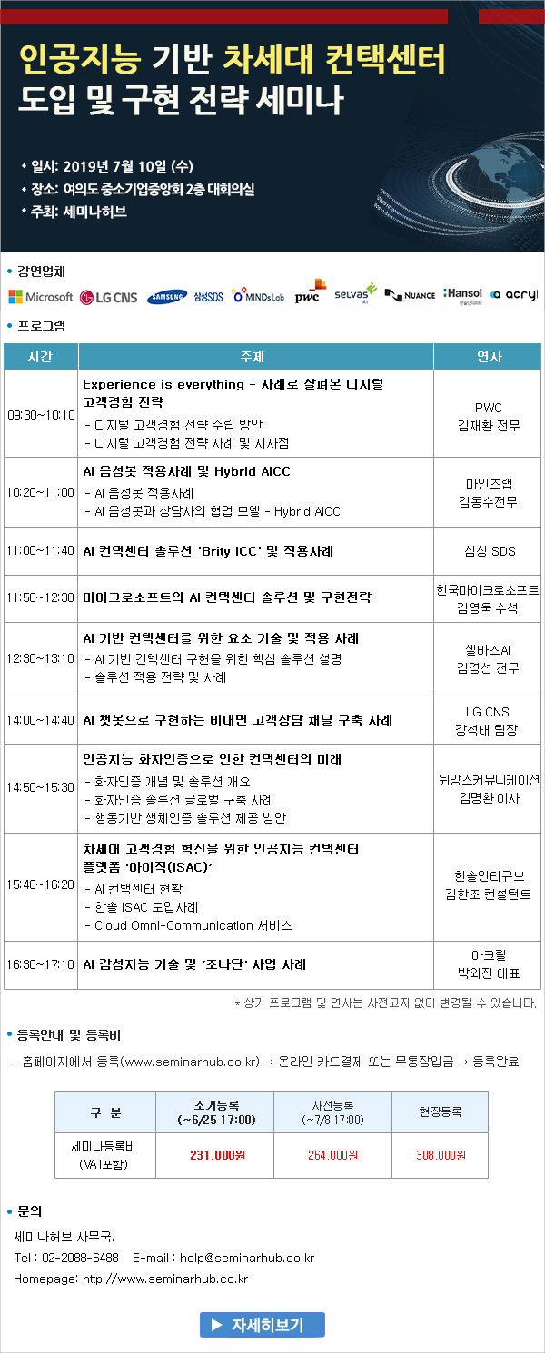 - 행사명: 인공지능 기반 차세대 컨택센터 도입 및 구현 전략 세미나