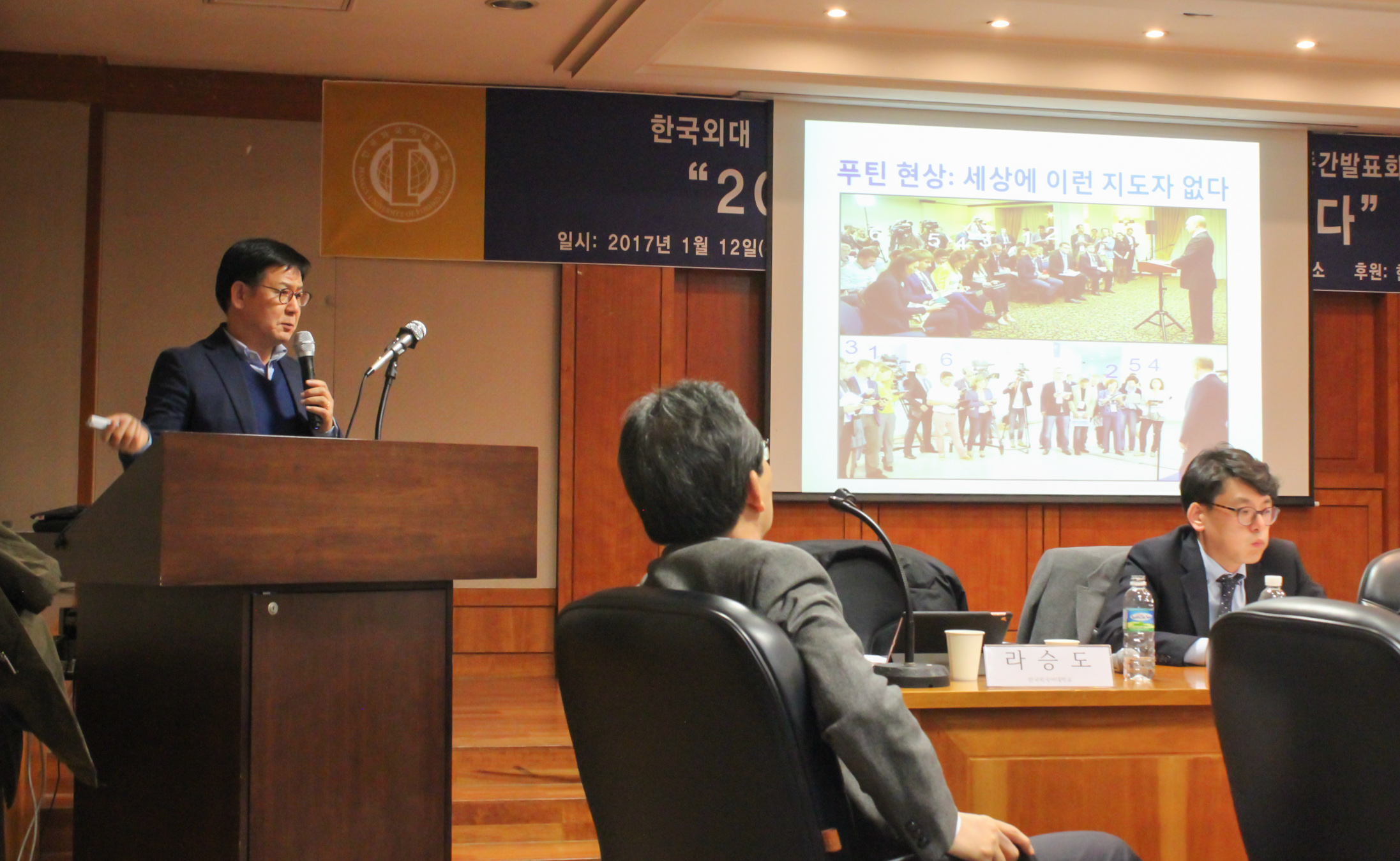 우리연구소 김현택 소장의 개회사로 시작된 본 학술회의에서 총 6개 영역을 중심으로 2016년을 회고·평가하고 2017년을 전망했다이규형 전 주러 대사의 사회로 진행된 제1회의에서는 국내정치(장세호), 경제일반(이종문), 대외정치(제성훈영역에서그리고 홍완석 전 슬라브·유라시아학회장의 사회로 진행된 제2회의에서는 군사안보(김규철), 한러관계(현승수), 사회문화(라승도영역에서 진지하고 폭넓은 논의가 있었다특히우리연구소 장세호 HK연구교수는 국내정치 부문에서 “‘비상’(非常)에서 일상’(日常)으로 복귀 모색의 주제로라승도 HK연구교수는 권위주의와 온정주의 사이에 갇히다라는 주제로 발제했다.