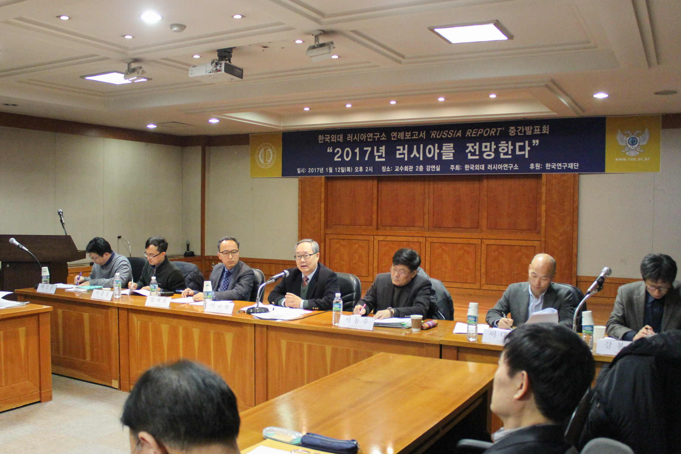 2017년 1월 12(우리연구소는 한국외대 서울캠퍼스 교수회관 2층 강연실에서 연례보고서 RUSSIA REPORT 발행의 일환으로 “2017 러시아를 전망한다” 제하의 국내학술대회를 개최했다우리연구소의 2017년 첫 학술행사로서 본 회의에는 러시아 전문가와 학문후속세대 등 총 80여 명이 참석하여 성황을 이뤘다.