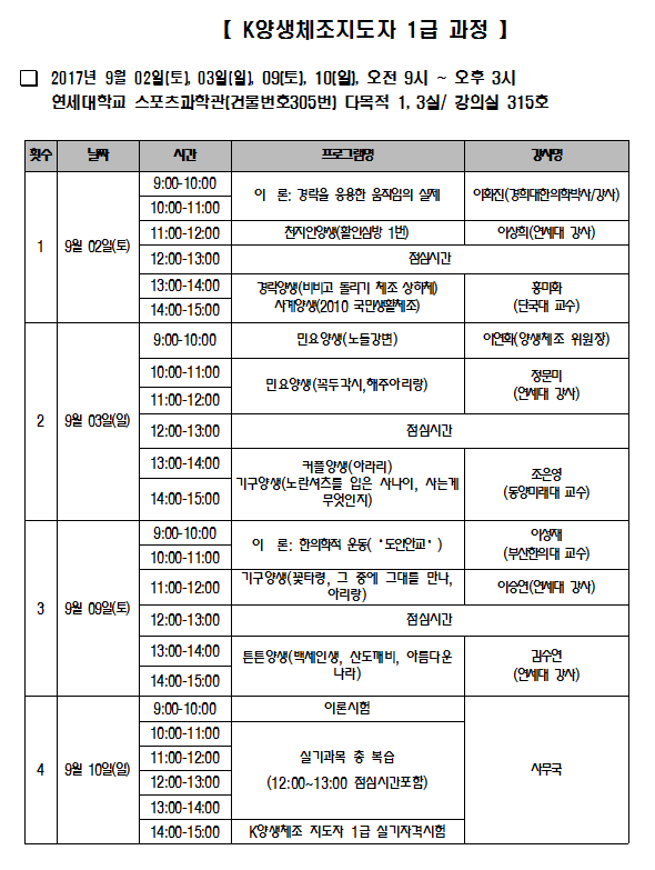 K 양생체조지도자 1급과정 수업계획서