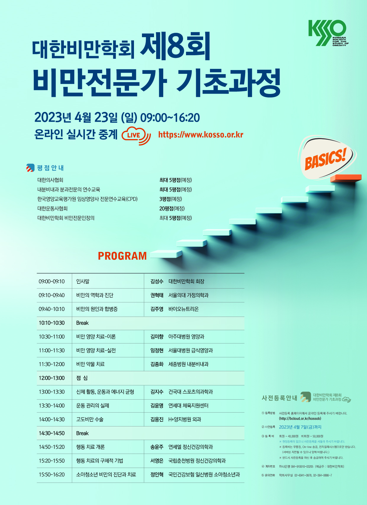 제 8회 대한비만학회 비만전문가 기초과정 개최 안내