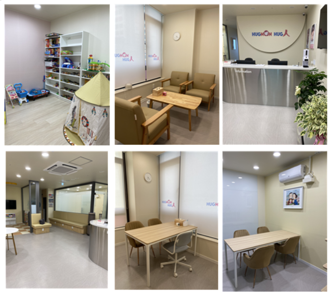 평수는 55평이고, 놀이치료, 언어치료, 미술치료 등 가능한 방(바닥난방)이 4개, 성인상담실 및 검사실 4개, 리셉션 1개, 행정실, 대기실 놀이방 등으로 되어 있습니다.