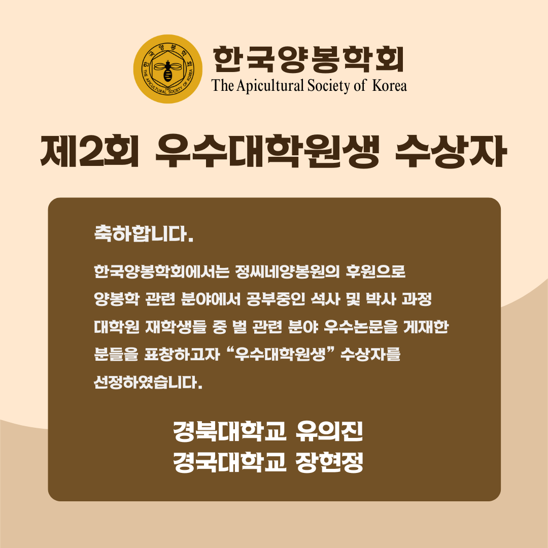 2026년 제2회 한국양봉학회 우수대학원상 시상식 안내