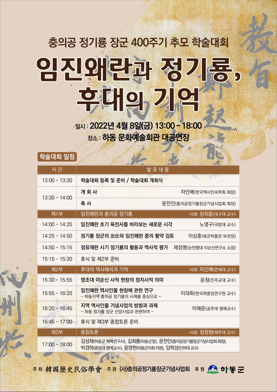 충의공 정기룡 장군 400주기 추모 학술대회가 열릴 예정입니다.