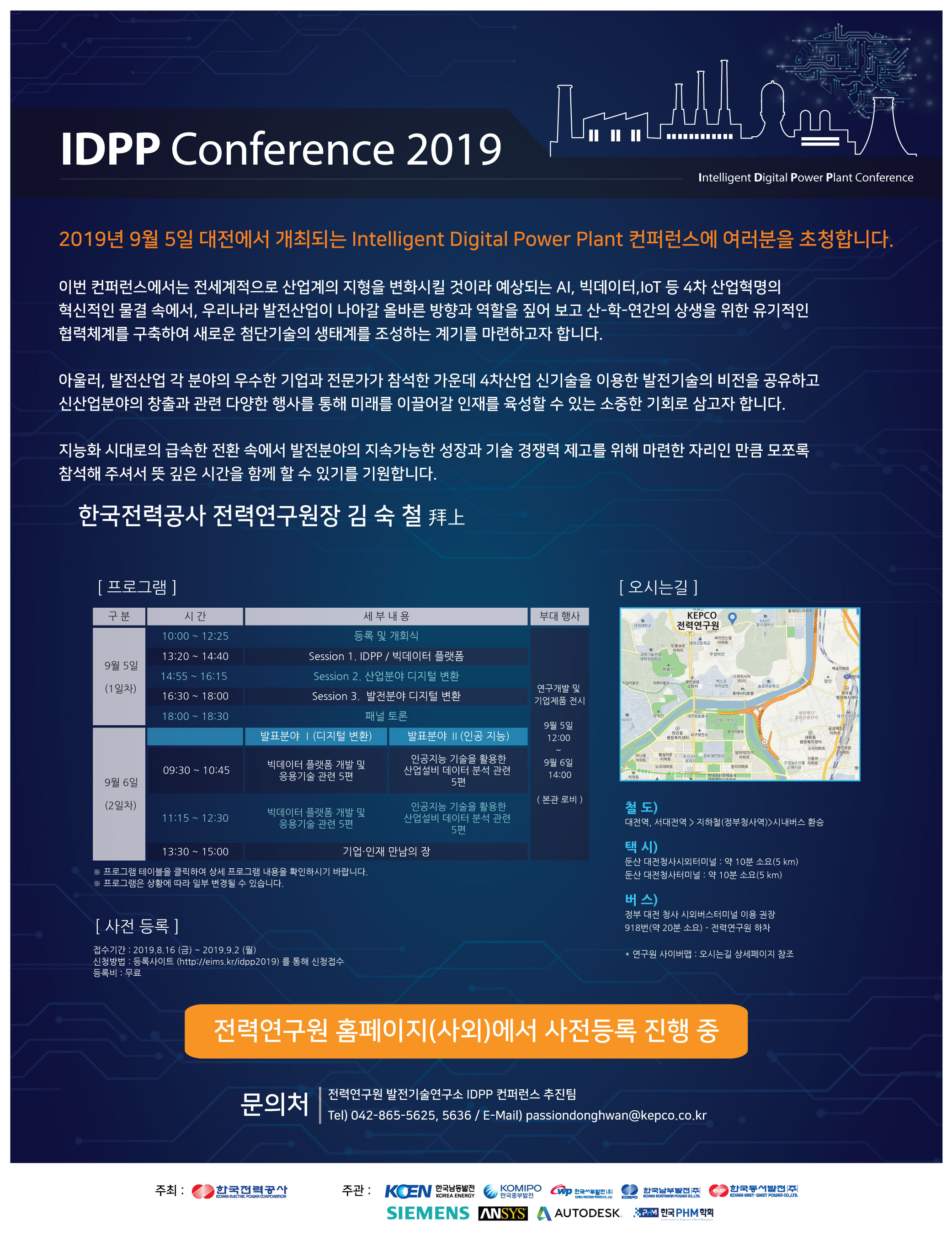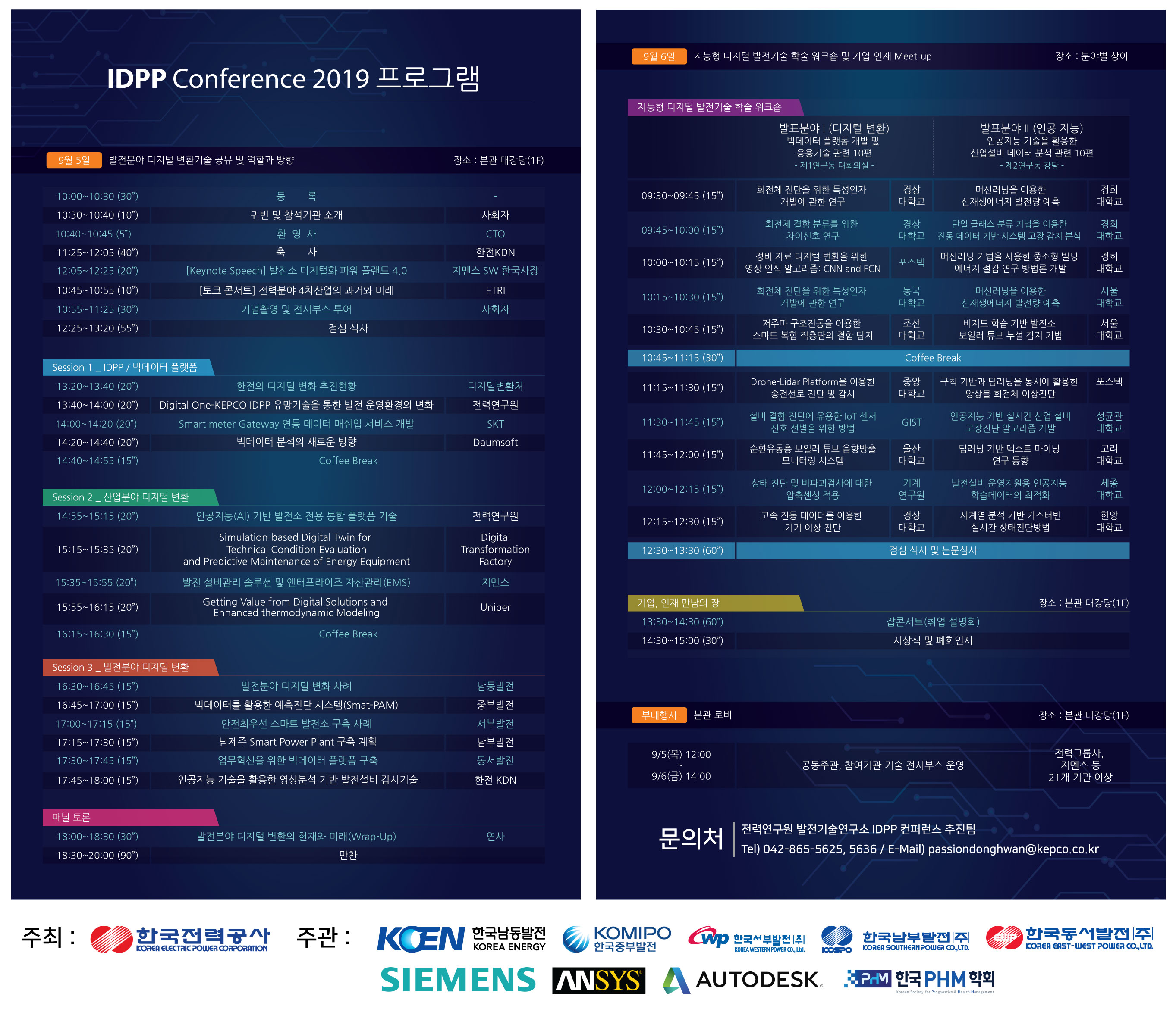 IDPP Conference2019 개최안내: 9/5-6 대전 전력연구원