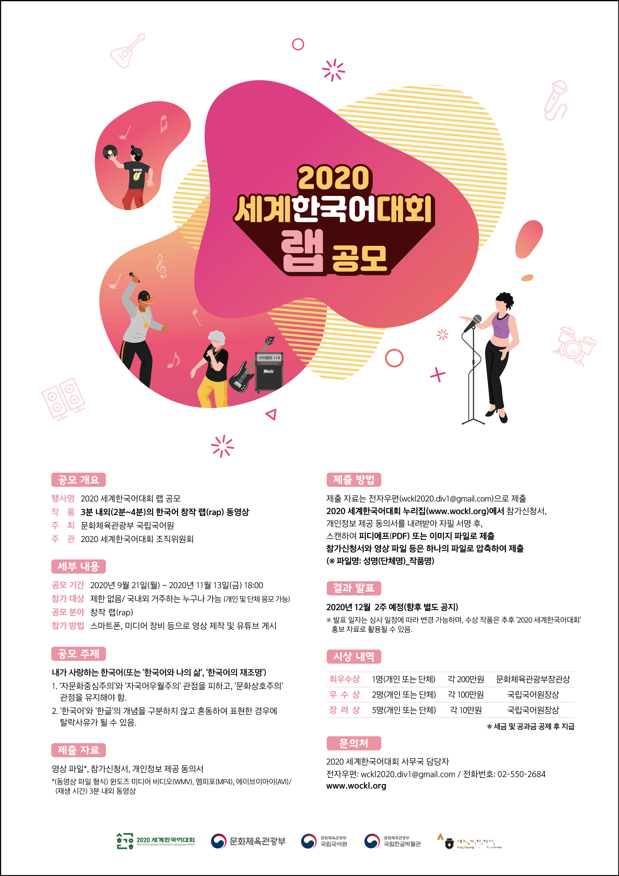 [문화체육관광부, 국립국어원] 2020 세계한국어대회 [한국어 랩 공모] 개최 안내 ( ~2020년 11월 13일)