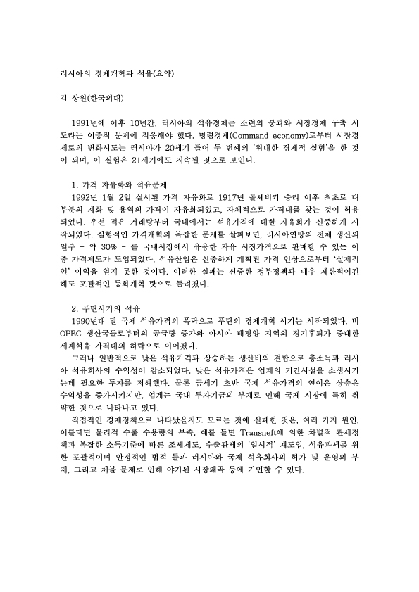 제50차 러시아의 경제개혁과 석유 외 1