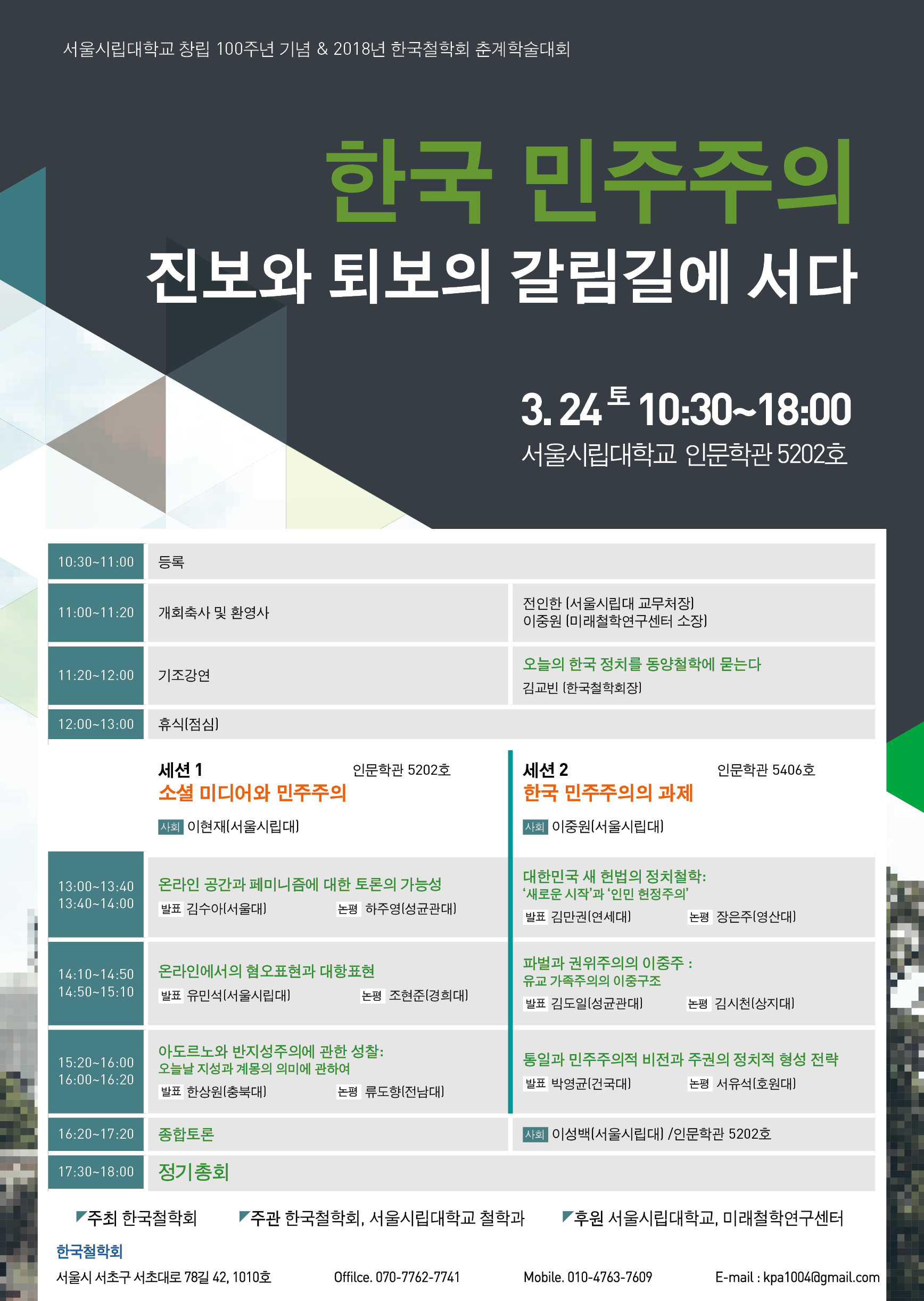 2018년 3월 24일 토요일, 서울시립대 인문학관에서 있었던 한국철학회 학술대회 풍경을 담았습니다.