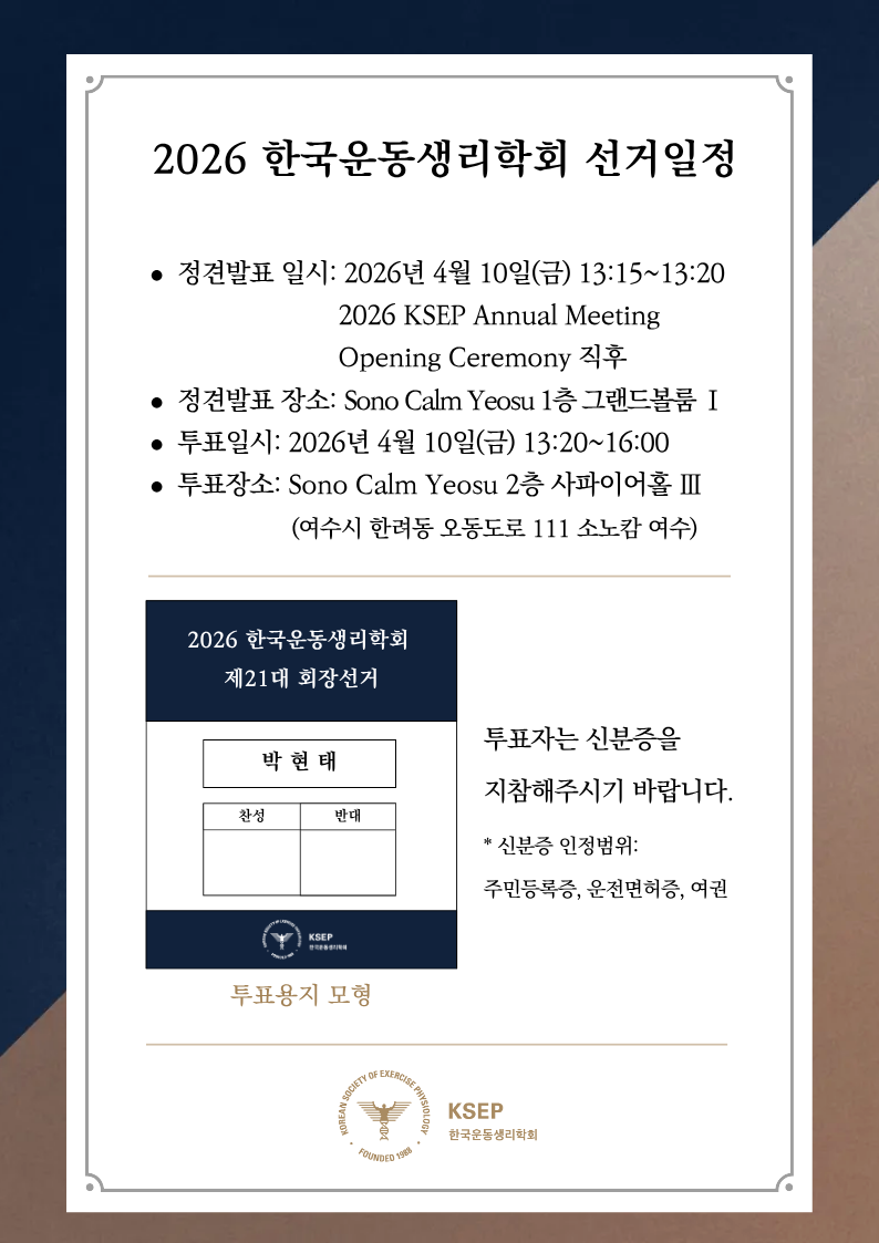 제21대 한국운동생리학회장 선거 일정 안내 및 후보자 공보문