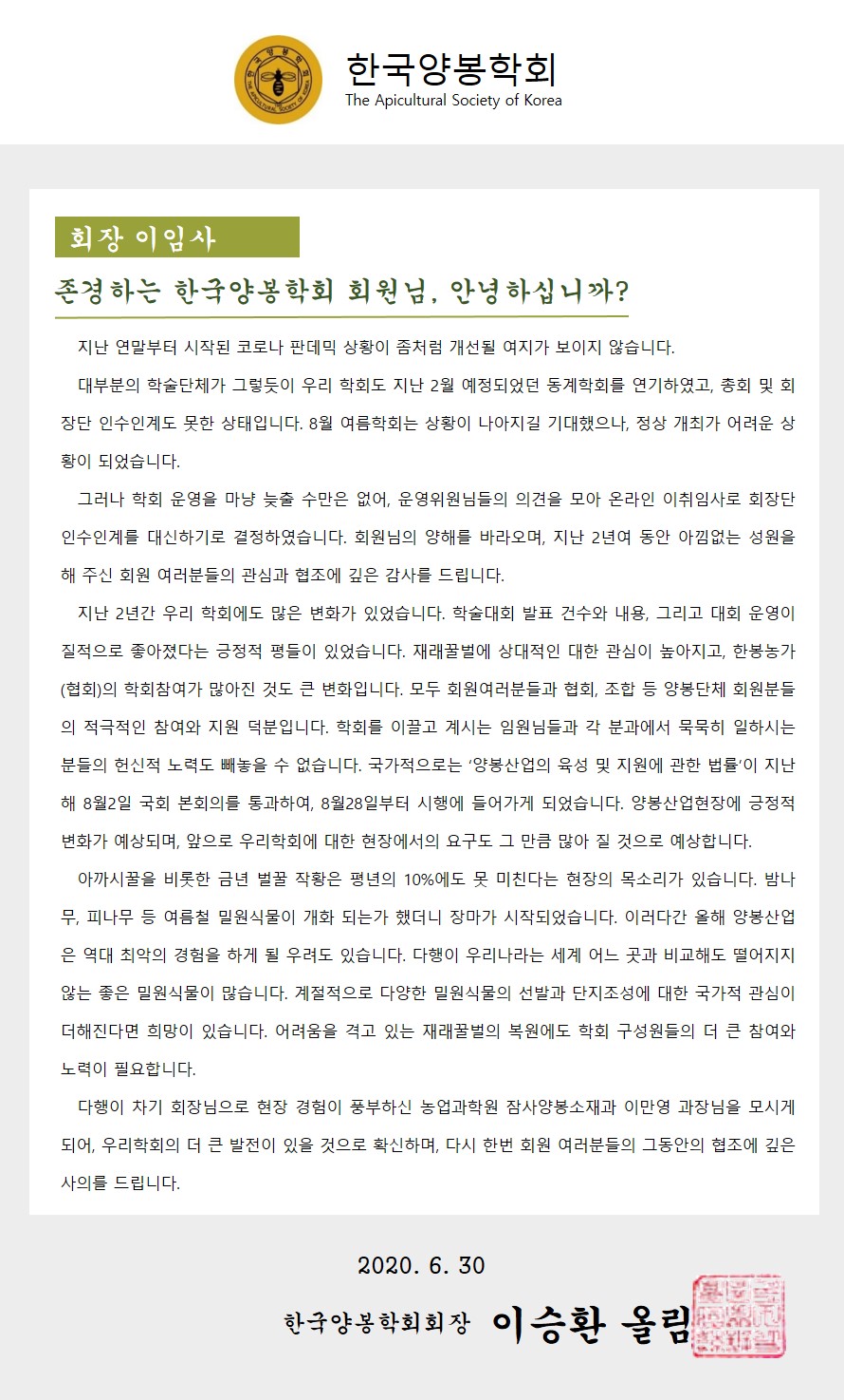 2020년 제 35차 한국양봉학회 동계 학술대회 및 총회 개최
